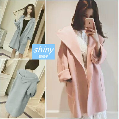 None, 399超商免運 599折30 輸入代號 M7OJ-IPQJ-ZB18-R5YO【V1173】shiny藍格子-清新甜美.百搭純色翻領寬鬆連帽中長款毛呢開衫外套。在樂天市場的shiny藍格子有最棒的商品,是您省錢的最佳選擇。